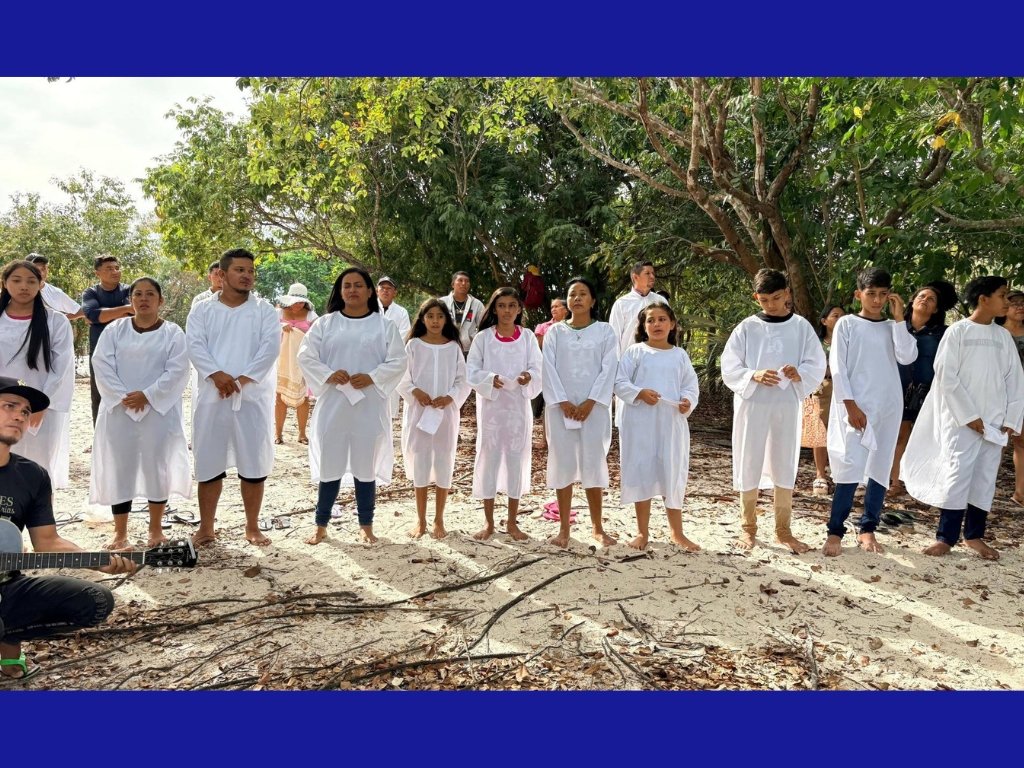 A praia do Cajual, em Terra Santa, no Pará, foi cenário do batismo de 11 jovens. A cerimônia de confissão pública de fé em Cristo ocorreu no sábado (04) e mobilizou grande comunhão, com a presença de dezenas de promessistas do campo local, que prestigiaram e celebraram a chegada dos novos membros.
