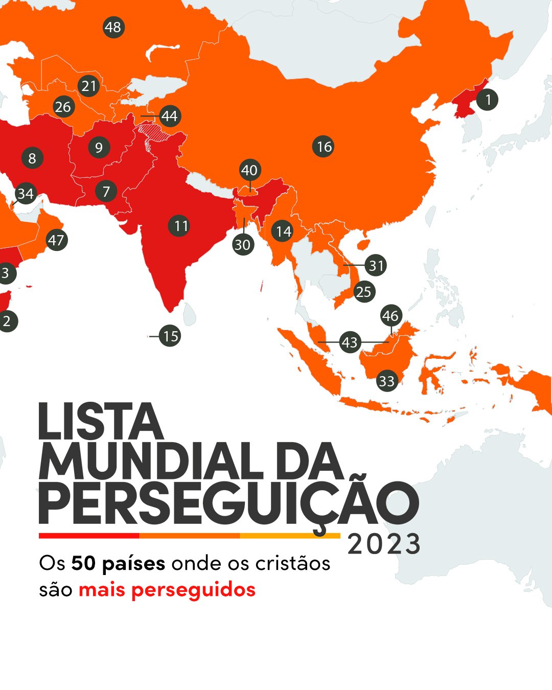Destacamos as seguintes nações da lista: (1) Coréia do Norte, (6) Nigéria (onde há promessistas), (8) Irã, (11) Índia (onde há promessitas), (16) China, (22) Colômbia (onde há promessistas), (27) Cuba, (32) Moçambique (onde há promessistas), (34) Catar e (38) México. “Desde 2021, todos os 50 países da Lista Mundial da Perseguição têm apresentado níveis extremo e severo de perseguição”, declarou Marco Cruz, Secretário-geral da Portas Abertas.