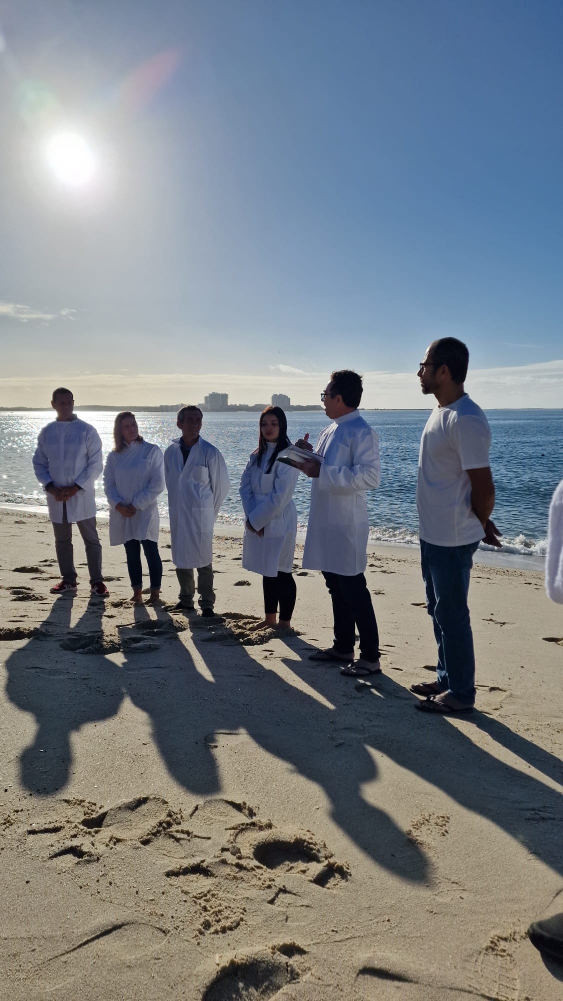Duas mulheres e um homem foram batizados no mar de Albarquel, em Setúbal; confira