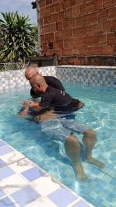 Então, na manhã daquele dia festivo, na piscina da casa da irmã Edileuza, próxima à igreja, ele desceu às águas, batizado pelo Pb. Vinícius, que pela primeira vez realizou um batismo, com o auxílio do Pastor titular, José Paulo Junior.