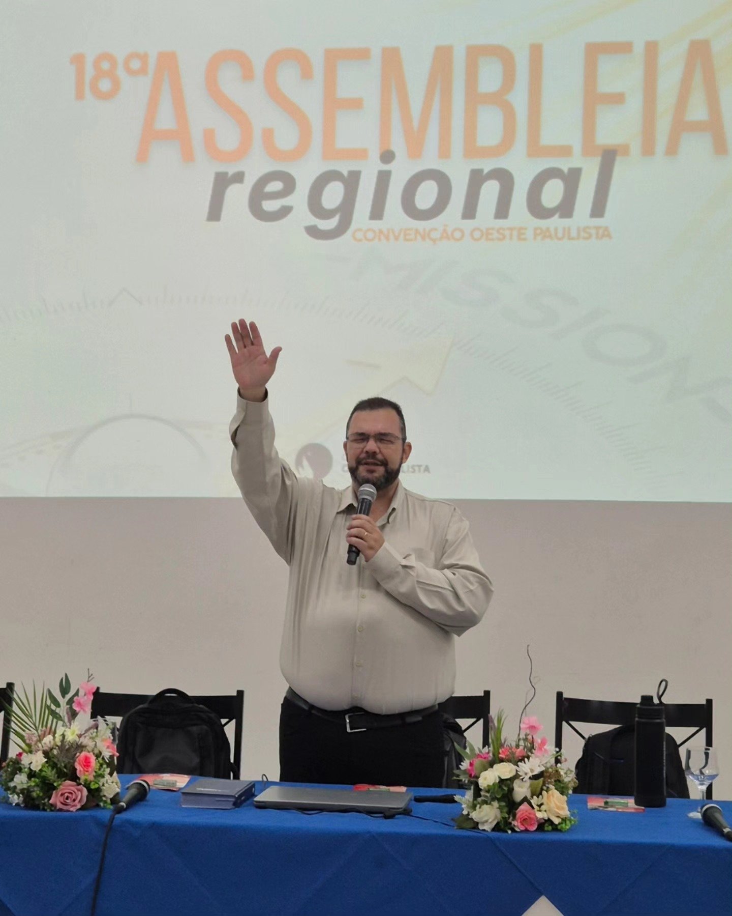 Com o tema “Estarei sempre com vocês – a garantia da Promessa de Cristo enquanto em missão”, foi realizada a 18ª Assembleia Regional da Convenção Oeste Paulista (COP), composta por uma sessão administrativa e um grande culto de gratidão, com a participação de cerca de 200 pessoas, que foram impactadas pela presença de Deus no auditório do Alves Hotel, em Marília (SP). Além disso, a programação contou com stands dos ministérios regionais e arrecadou itens de higiene pessoal para que 11 igrejas locais distribuíssem.