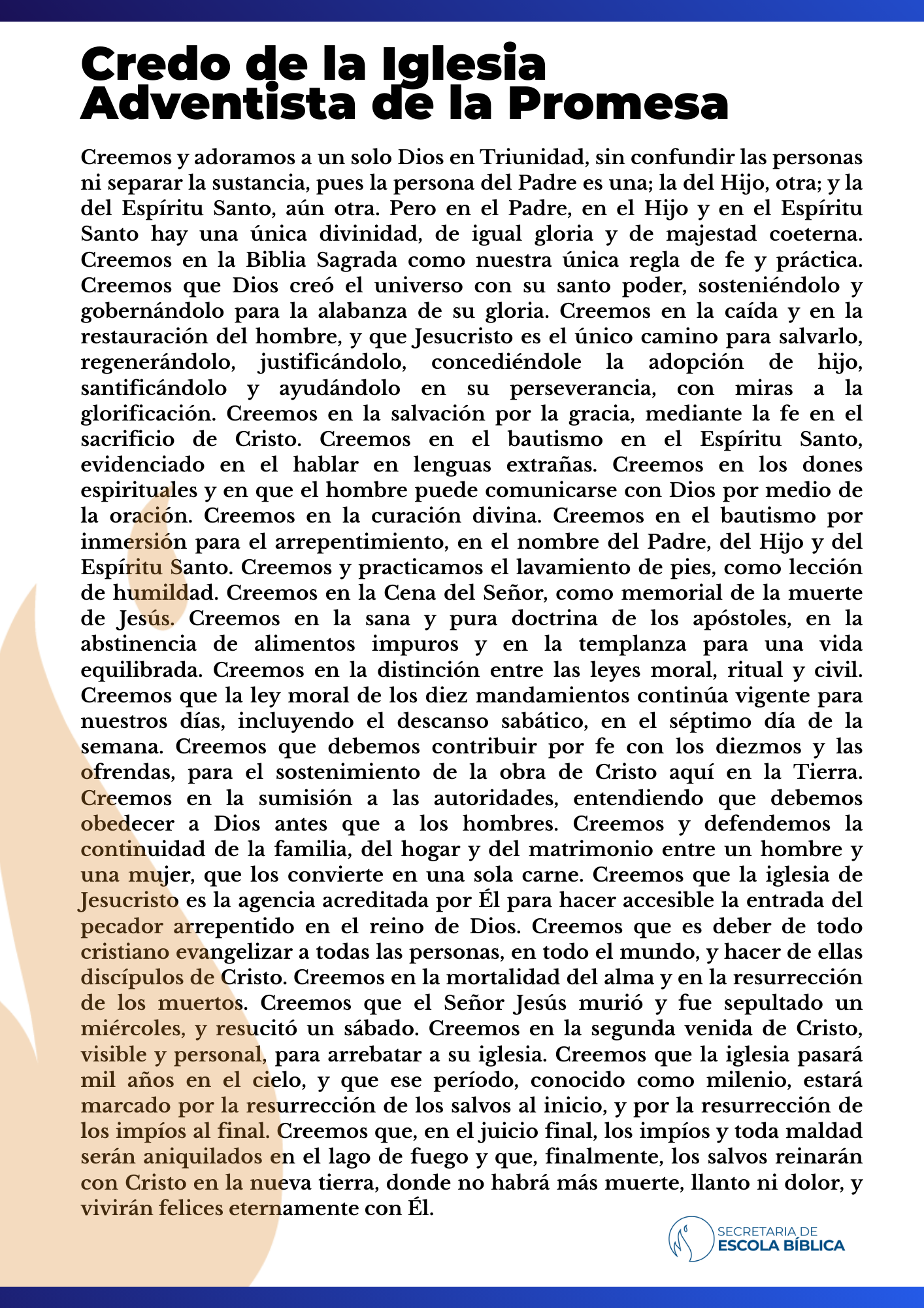 Lleva a la sala de clase los libros O Doutrinal y La Fe que Profesamos. Como explica el estudio, presentan de forma clara las creencias bíblicas de la Iglesia Adventista de la Promesa.