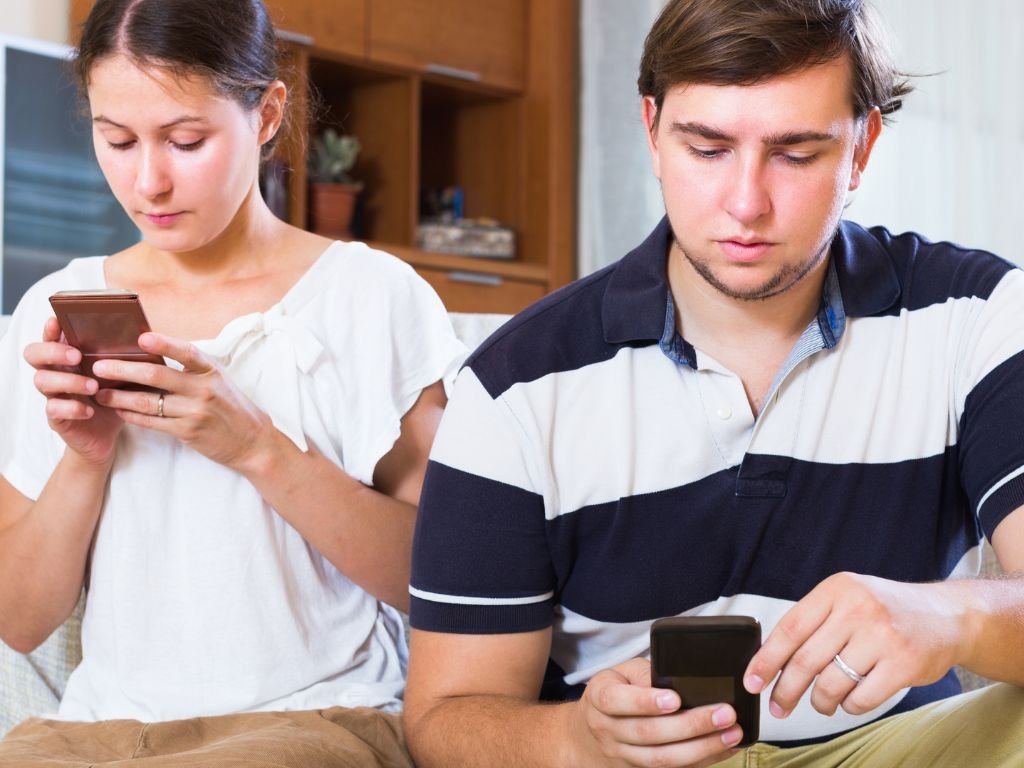 Seleccionamos algunas escenas que sin duda forman parte del día a día de las familias: todos en casa con el celular — juntos, pero separados; usando el celular antes de dormir; momentos en que están juntos compartiendo contenidos de internet; o incluso comiendo mientras usan el dispositivo.