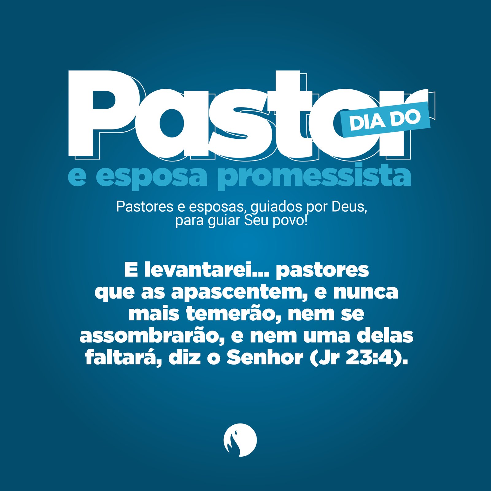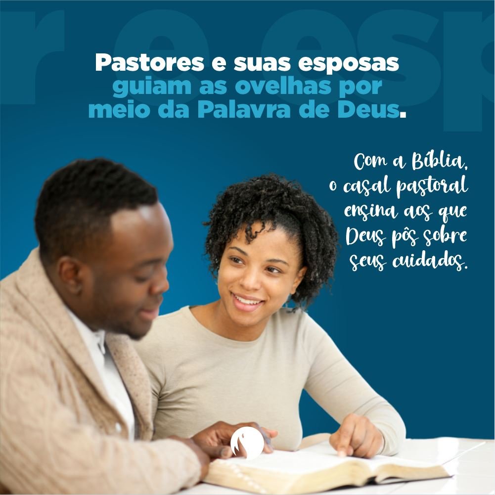 2. Pastores e suas esposas guiam as ovelhas por meio da Palavra de Deus.Pastores e missionárias, com o “cajado” da Palavra de Deus, guiam a igreja em sua peregrinação na Terra. É com a Bíblia que dão o alimento correto para que cada pessoa, discipulada em todo o ensino do Pastor Jesus, cresça na vida cristã. Em Jeremias 23:4b, Deus diz que os pastores, missionários e missionárias que escolheu desempenhariam um papel vital em momentos conturbados, como no caso da pandemia de Covid-19. Segundo o profeta, as ovelhas jamais temerão, nem se espantarão; nem uma delas faltará, diz o Senhor (Jr 23:4b).