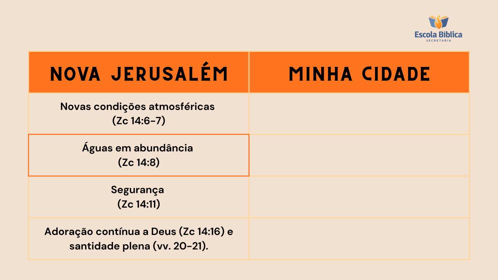 DICA TRÊS – Tabela “A Nova Jerusalém e a minha cidade” (item 4)
