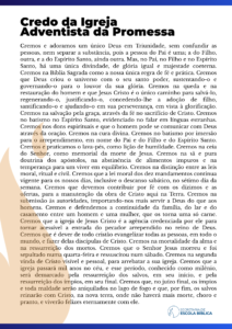 Para o item 2, “O compromisso com a verdade”, distribua entre os alunos o Credo da Igreja Adventista da Promessa. O credo é uma declaração concisa e resumida dos pontos de fé de uma igreja. A ideia é que os estudantes leiam juntos, guardem e memorizem esse conteúdo, fortalecendo sua fé.