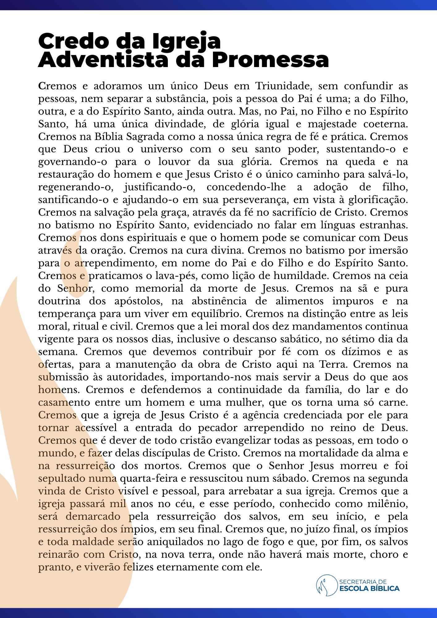 Abaixo, disponibilizamos o credo em dois formatos: PNG e PDF. Nossa sugestão é que você projete a imagem no data-show, compartilhe nos grupos de WhatsApp ou imprima o material e distribua entre os alunos.