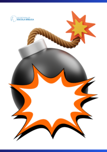 À medida que for indicar o ensino de cada tópico ou perguntas, antes de iniciar as explicações, pergunte: “O que explode a harmonia em sua casa? A comunicação? O perdão? A maturidade?”. Em seguida, peça ao estudante para escrever na bomba e colar no painel. Deixe disponível, para cada item, de 1 a 3 figuras para os alunos preencherem. Depois das colocações e da participação dos alunos, explique os conteúdos e as soluções bíblicas para gerenciar os conflitos enquanto vai explicando cada item.