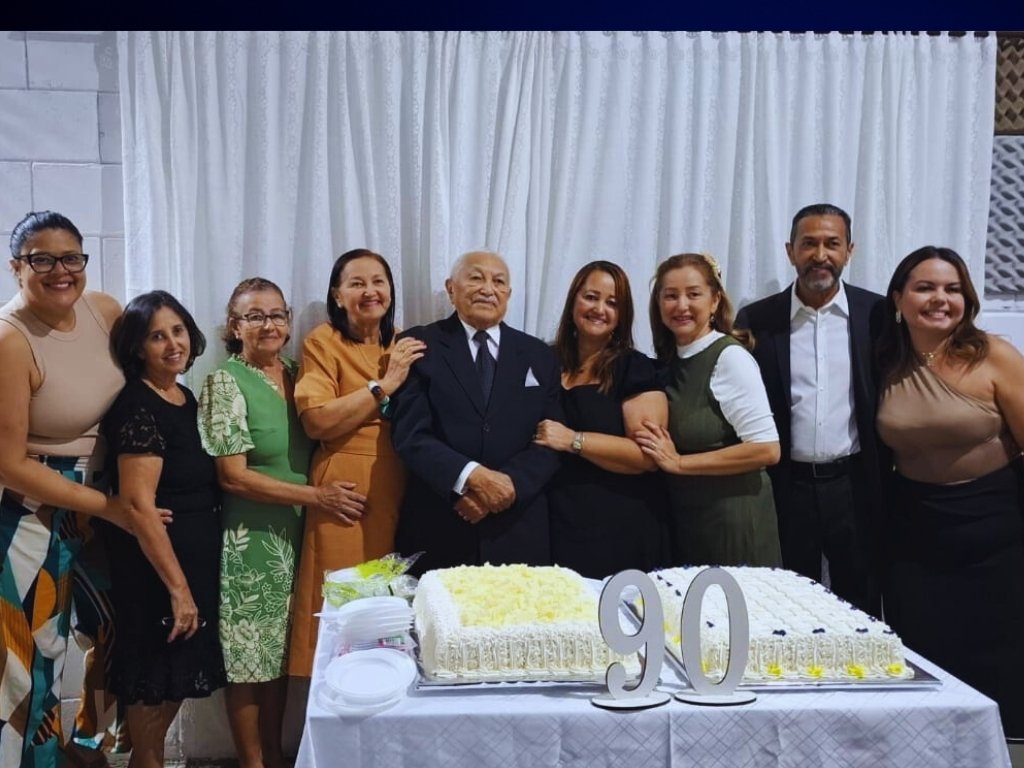 Ela também expressou a gratidão da família: “Estamos felizes e gratos a Deus pela oportunidade de estar ao seu lado nesse momento tão significativo”. Sobre a celebração, observou: “Hoje estamos aqui reunidos, amigos, irmãos em Cristo, filhos, netos e bisnetos, para te honrar. É um momento de reverenciar a pessoa incrível que você é e tudo o que construiu ao longo dessas nove décadas de vida”.